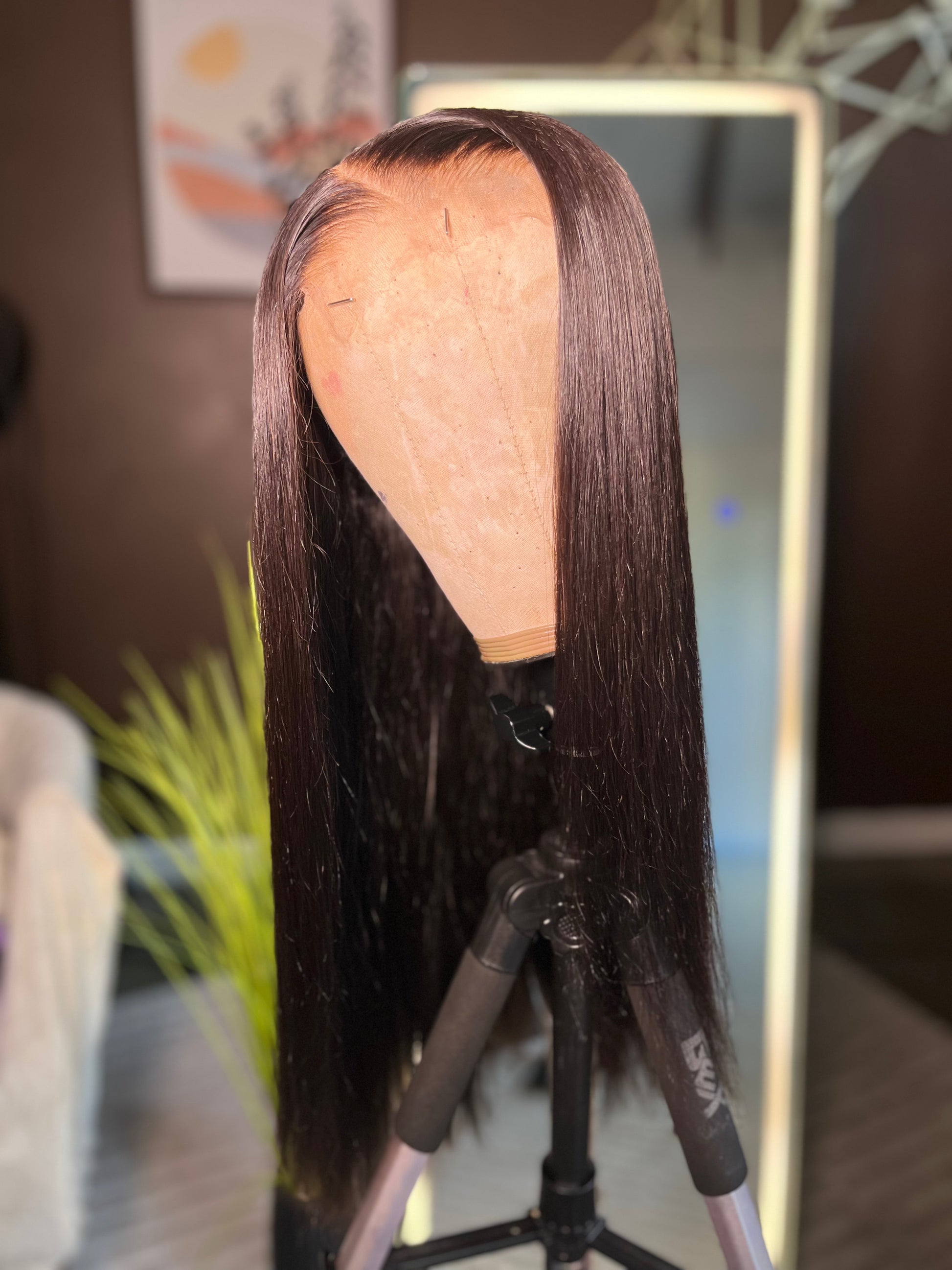 Noir is the definition of sultry sophistication. Made with our premium raw Burmese curly hair, this custom unit has been expertly straightened and colored to a rich jet black for a sleek, high-impact finish. Designed to exude confidence and elegance, Noir is soft, full, and bold—just like the woman who wears it.